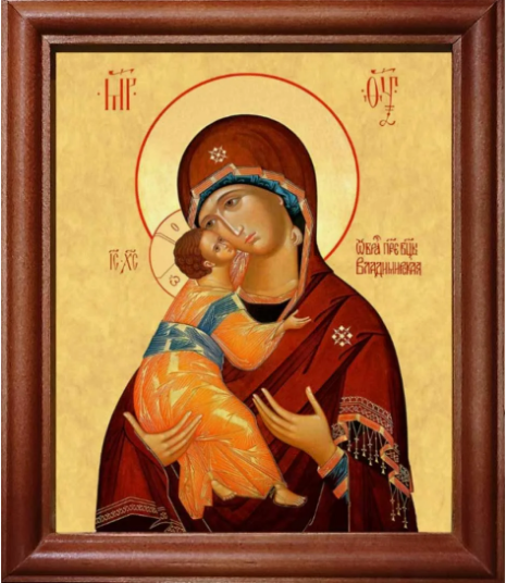 Владимирская икона Божией Матери. Хранится в домовом храме святителя Николая в Толмачах (Третьяковская галерея, Москва). Особенность: левая ножка БогоМладенца согнута так, что мы видим подошву ступни, «пяточку». Защищала Русь от нашествий, помогает в молитвах об укреплении духа и веры, за мир, о защите, о семье и т.д.