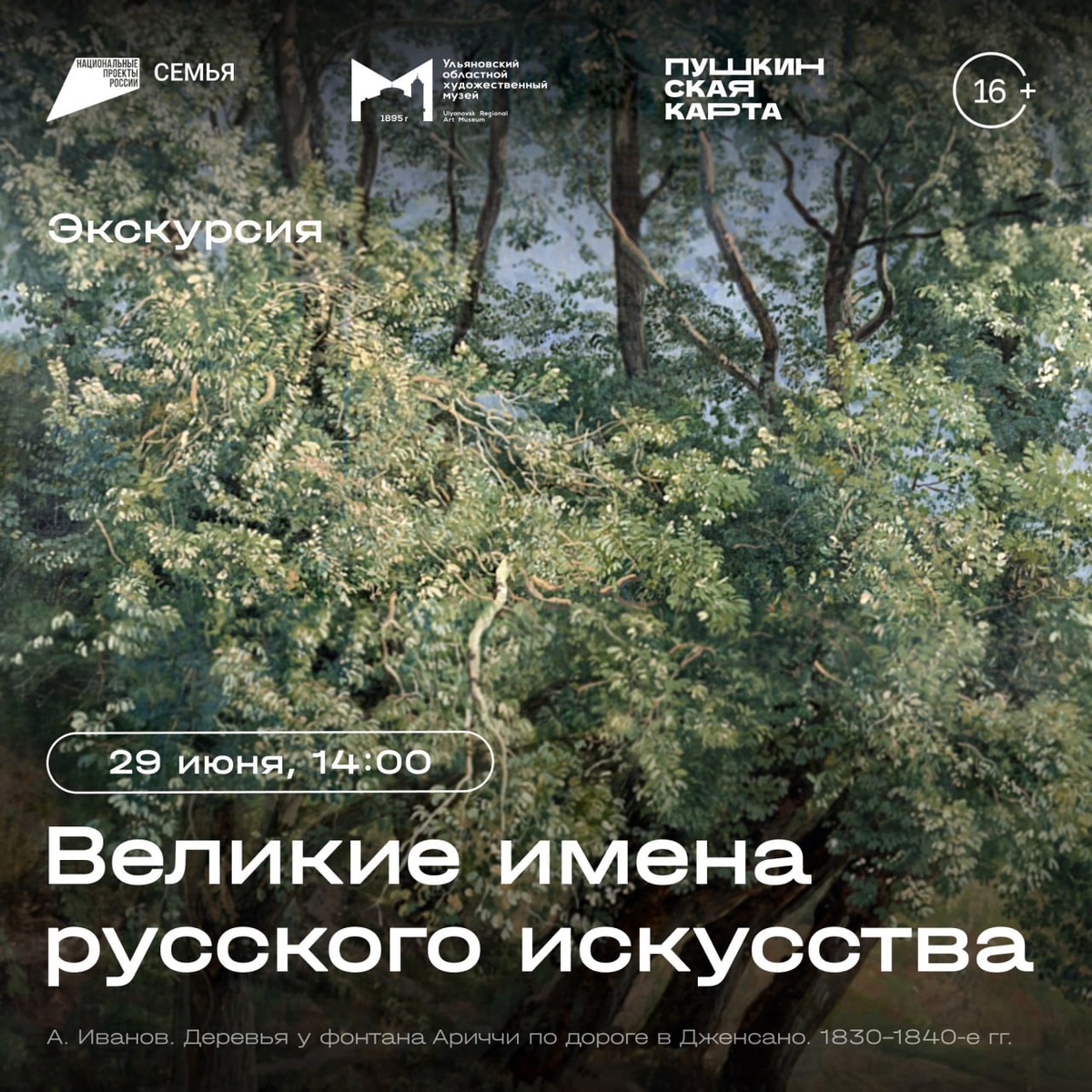 Ульяновский областной художественный музей приглашает на экскурсию «Великие имена русского искусства». Посетители смогут ознакомиться с работами таких мастеров, как Дмитрий Левицкий, Федор Рокотов, Александр Иванов и других. Экскурсия позволит глубже понять вклад каждого художника в развитие русского искусства и историю их произведений в коллекции музея. Особое внимание будет уделено портрету Левицкой-Волконской работы Василия Тропинина из собрания Государственной Третьяковской галереи, переданный в Ульяновский областной художественный музей на временное экспонирование. Экскурсия пройдет 29 июня в 14:00. Действует пушкинская карта. Фото: Ульяновский областной художественный музей Подписаться на наши новости