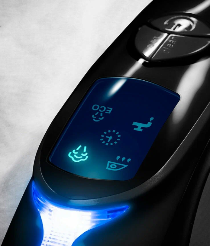 Утюг удобно ложится в ладонь — ручка продумана по форме и не скользит даже при длительном использовании. Все кнопки расположены на привычных местах, так что управлять устройством можно вслепую, не отвлекаясь от процесса.