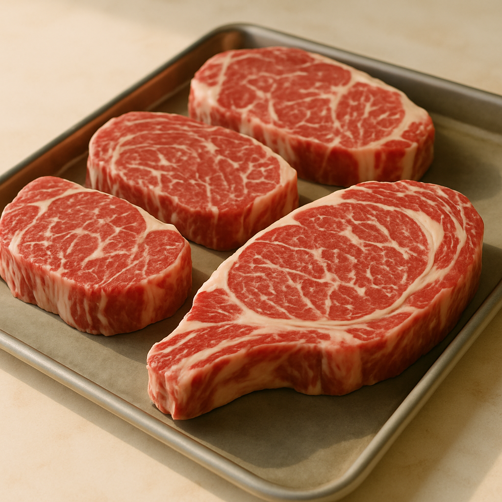 1. Рибай (Ribeye): Мечта новичка. Имеет выраженную "шапочку" спинного жира и богатую мраморность в самой мышце. Жир гарантирует сочность даже при небольшом пережаре. Прощает ошибки температуры.