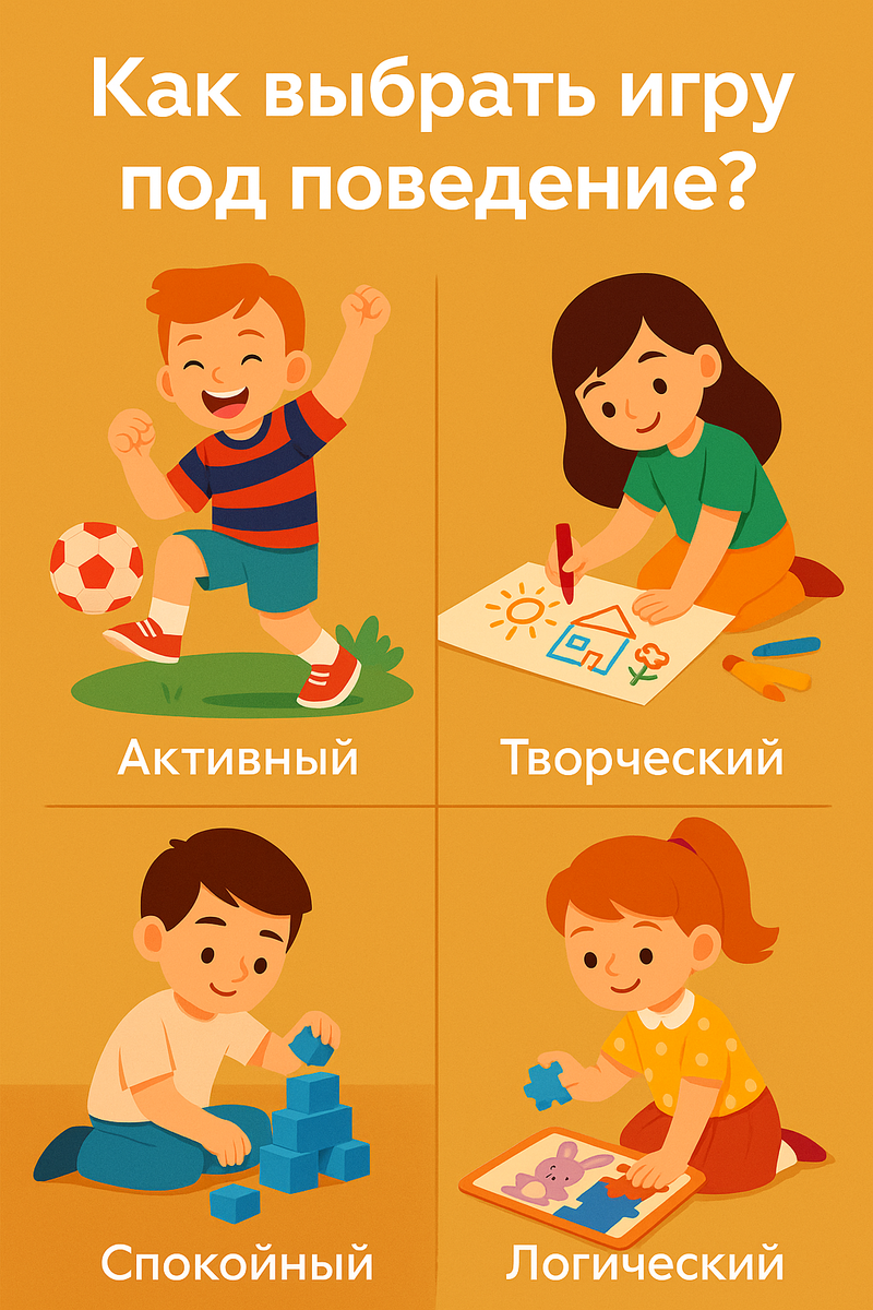 🎯 Подходят: 🌱 Важно: не ругайте — поддерживайте. Игра — не экзамен, а путь. 👉 Подбирая игру под поведение, вы помогаете не только интересно провести время, но и решать реальные задачи развития: