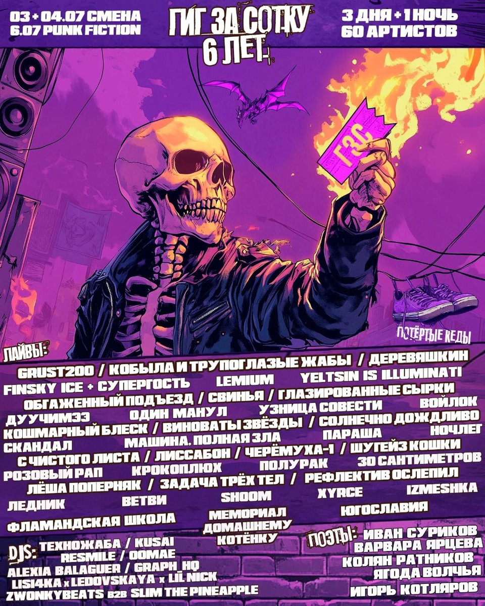 6 лет СМИ про андер ГЗС, 60 артистов: четверг 3.07 + вечер и ночь пятницы 4.07 в клубе "Смена" 6.07 в Punk Fiction Внутри привозы из сибири и Курска, жанровое раздолье от пост-панка до сладжа и деткора, перформансы, маркет, тату, кухня и очень много чего ещё. Билеты тут, а выгоднее брать вездеходы на все дни. #поддержисвоюсцену