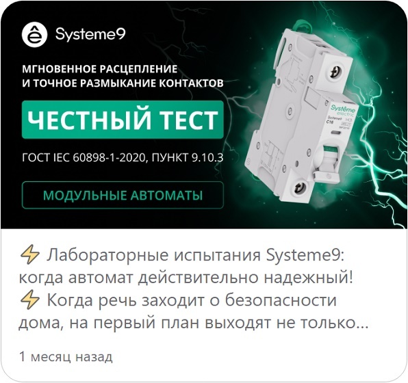 На канале Systeme Electric Энергетика и Автоматизация 23 мая 2025 г. опубликован пост «Лабораторные испытания Systeme9: когда автомат действительно надежный!», свидетельствующая о некомпетентности лиц, его подготовивших:
