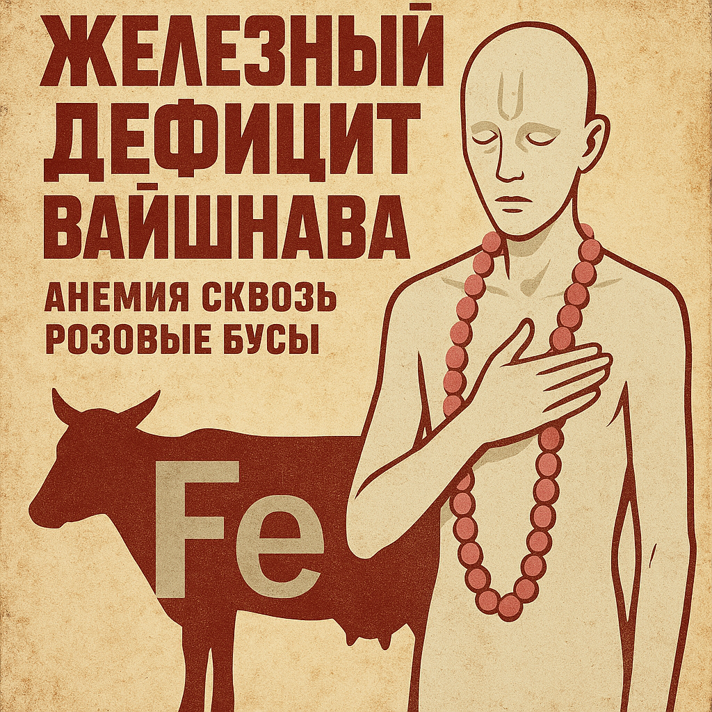 Анемия — это не просто лабораторная цифра. Это шёпот крови, который становится громче любой мантры, когда кислород не доходит до нейронов, а дофамин растворяется в молочной сладости прасада. Вайшнав, решивший отказаться от красного мяса, берёт на себя обязательство ежедневного нутридисциплинного подвига; игнорировать его — значит обменять бодрость служения на серый вуальный туман усталости. Железо не подчиняется философии, оно подчиняется химии желудка. И, если цель — ясный ум, сильное сердце и свободное дыхание в киртане, то железо должно вернуться на алтарь метаболизма, пусть даже путь к нему лежит через пересмотр священных пищевых привычек.