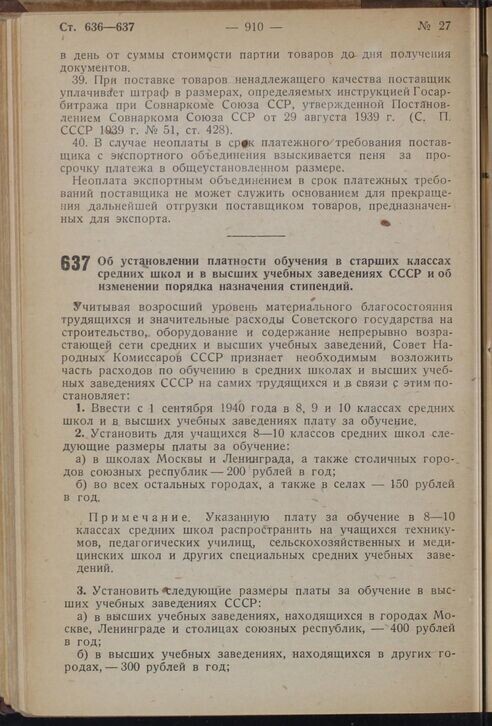 21 декабря 2024 Сегодня чествуют русофоба тов. Сталина, которому приписывают "благодетельство" в виде "бесплатного и доступного советского образования", тогда как тов. Сталин с середины 20-х годов последовательно педалировал введение платы за обучение в 8-10-х классах, техникумах, училищах, ВУЗах. При этом, как и подобает "примерному ученику" русофоба тов. Ленина, в 1940-х годах тов. Сталин отменил плату за обучение в 8-10-х классах, техникумах, училищах, ВУЗах для не-Русских в национальных Республиках, грубо нарушив Конституцию СССР. Ст. 123 Конституции СССР: "Равноправие граждан СССР, независимо от их национальности и расы, во всех областях хозяйственной, государственной, культурной и общественно-политической жизни является непреложным законом. Какое бы то ни было прямое или косвенное ограничение прав или, наоборот, установление прямых или косвенных преимуществ граждан в зависимости от их расовой и национальной принадлежности, равно как всякая проповедь расовой или национально