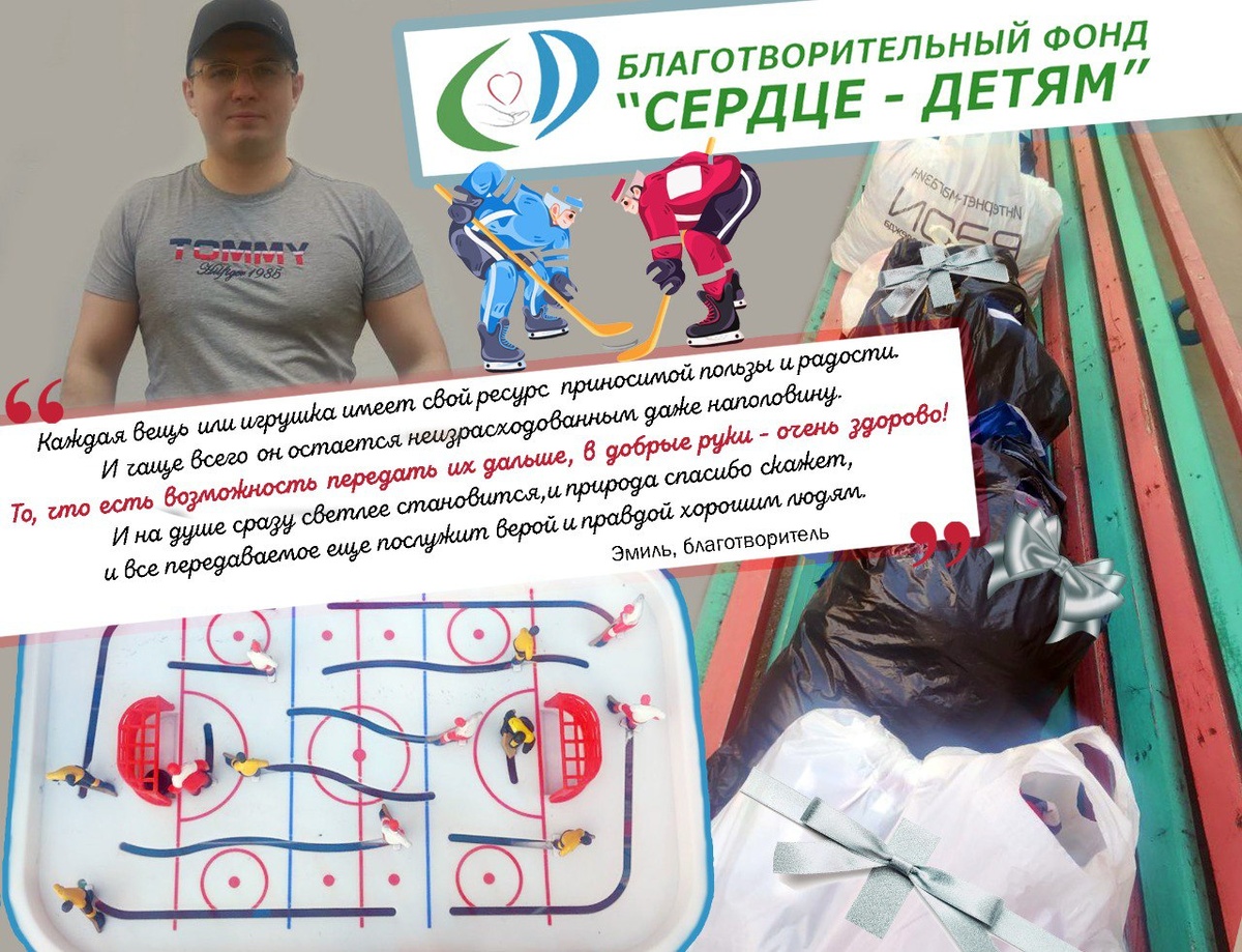В хоккей играют настоящие мужчины! 🥇Чтобы их больше больше - своей настольной ледовой ареной с подопечными нашего Фонда поделился Эмиль. А заодно и комплектами женской и детской одежды для трепетной группы поддержки будущих Чемпионов. 🏒 Запрос на спортивную атрибутику в семьях, попавших в сложную жизненную ситуацию - один из самых частых. Поэтому любая возможность поддержать юных спортсменов, простимулировать интерес к здоровому образу жизни для нас очень ценна! 👏 Спасибо нашим благотворителям за неравнодушие и щедрость! 💚 Вместе с Вами мы строим будущее общество, в которым есть место доброте, взаимопомощи и социальной ответственности. #сердцедетям #благотворительность #спорт