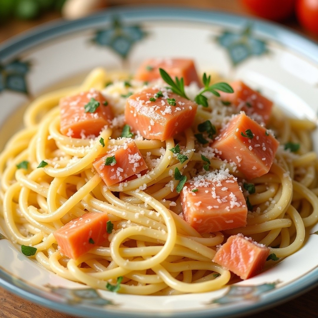 Спагетти с семгой в сливочном соусе Ингредиенты⤵️ 🔸Спагетти — 200 г 🔸Филе семги — 250 г 🔸Сливки 20% — 200 🔸Чеснок — 2 зубчика 🔸Лимон — 1/2 шт. 🔸Соль, перец — 1 щепотка 🔸Оливковое масло — 2 ст.л. 🔸Сыр пармезан — 30 г 🔸Укроп — 5 веточек Приготовление🐟 1. Отвари спагетти al dente. 2. На разогретой сковороде обжарь нарезанную семгу 3-4 минуты, добавь измельченный чеснок. 3. Влей сливки, потуши 5 минут, добавь лимонный сок, соль и перец. 4. Смешай соус со спагетти, посыпь зеленью и тертым пармезаном. Рецепт дня #спагетти #паста #макароны #семга #рыба #сливки #соус #ужин