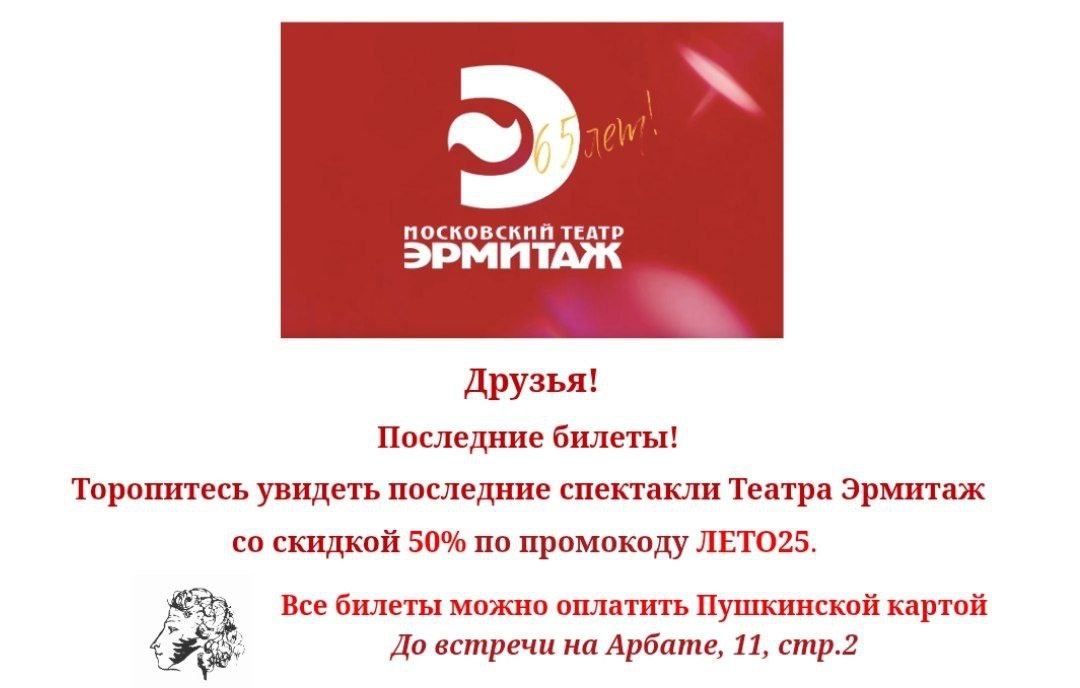 Театр Эрмитаж снова дарит 50% скидку на последние спектакли сезона
