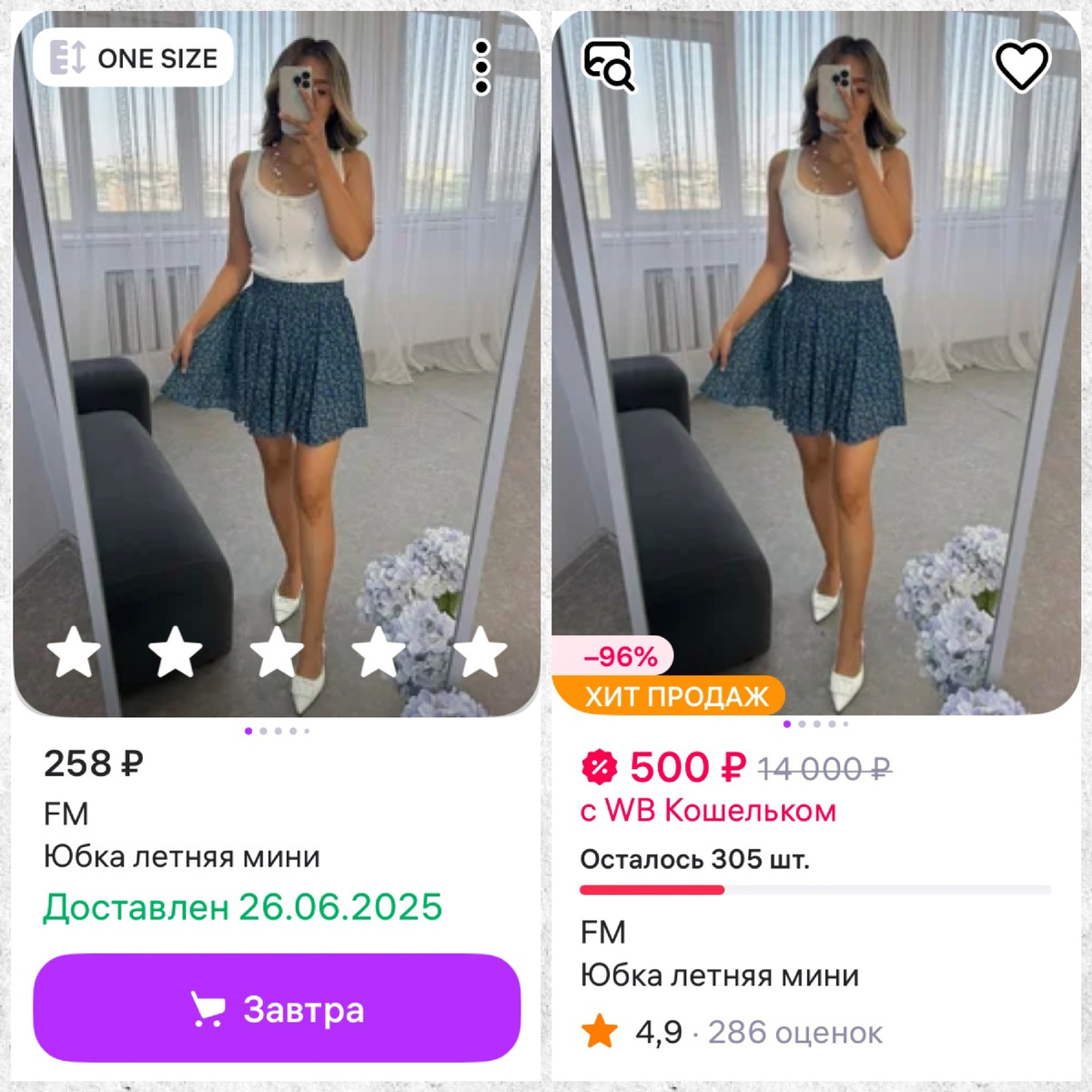 Друзья, всем здравствуйте! Наглядно показываю, как мы покупаем обновки с моими подписчиками и, кстати, делимся отзывами, словами благодарности и комплиментами в моём телеграм-канале Если Вы до сих пор не подписаны, то очень советую заглянуть в наш клуб любителей покупок, дабы убедиться, что нереальные цены - реальны! Долго расписывать не буду, фото в образе нет, просто показываю юбку-шорты, которую забрала только что, чтоб взять с собой в поездку на море. Артикул: 305865809 Прилагаю скрин, за сколько купила я, и сколько она стала стоить сейчас. Если кто-то тоже заказал сегодняшний лот, ведь ссылку в моменте я скидывала, делитесь своими впечатлениями, а я расскажу о своих. Упакована юбочка в мини зип-пакетик, всё аккуратно. Я её даже не примеряла в ПВЗ, и так всё понятно. Моё. Широкая резинка надёжно прострочена трижды. Думаю, ничего не должно перекручиваться. В комплекте прикреплён миленький подарок от продавца. Внутри юбки вшиты вот такие шортики, тоненькие, созвучного оттенка. Сам м