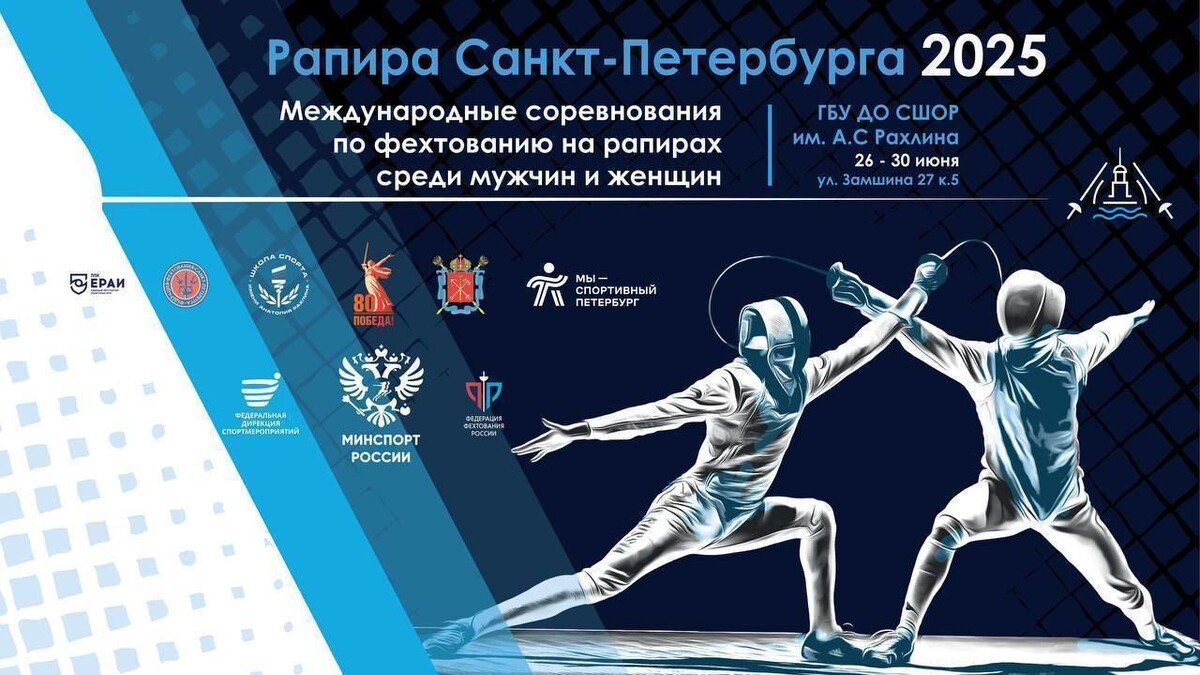 С 27 по 29 июня на площадке СШОР им. А.С. Рахлина Калининского района (Замшина ул., 27, корп. 5) состоится 48-й международный турнир по фехтованию «Рапира Санкт-Петербурга». В программу включены личные и командные соревнования по фехтованию на рапирах среди мужчин и женщин. В турнире выступят порядка 150 спортсменов из России, Вьетнама, Таиланда, Пакистана и Республики Беларусь. Сборная России будет представлена сильнейшим составом. Расписание соревнований: 27 июня Женщины Мужчины Личное первенство 10:00 – женщины, начало соревнований; 13:30 – женщины, табло 64; 15:00 – мужчины, начало соревнований; 18:30 – мужчины, табло 64. 28 июня Женщины Мужчины Личное первенство 12:00 – женщины, табло 32; 13:20 – мужчины, табло 32; 17:30-18:00 – церемония открытия; 18:00 – женщины, полуфиналы; 18:20 – мужчины, полуфиналы; 19:20 – женщины, финал; 19:40 – мужчины, финал; 20:05 – церемония награждения. 29 июня Женщины Мужчины Командное первенство 10:00 – мужчины, начало соревнований; 12:30 – женщины,