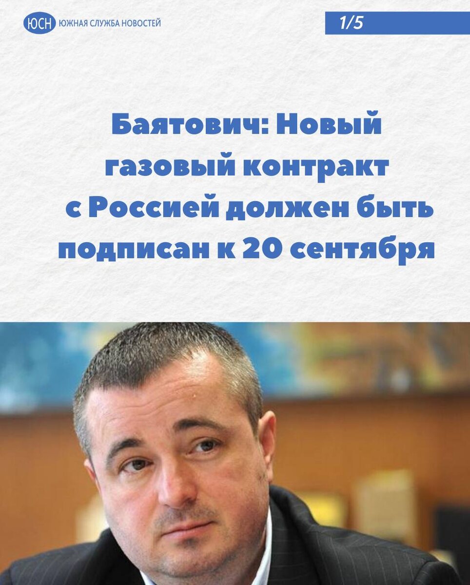 🔹 Баятович: Новый газовый контракт с Россией должен быть подписан к 20 сентября