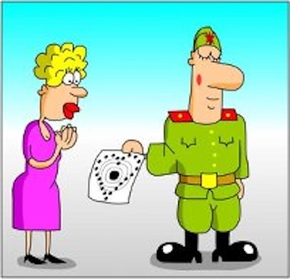 (Он встаёт перед женой по стойке смирно и отдаёт ей честь.)