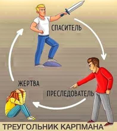 Треугольник Карпмана: Психологические Роли в Отношениях Привет, друзья! 🌟 Сегодня мы разберем одну интересную концепцию из транзактного анализа — треугольник Карпмана. Представьте себе три роли: спасатель, жертва и преследователь. Эти роли могут меняться, и каждый из нас может оказаться в любой из них — даже за несколько секунд! Давайте разберемся, как это работает и что важно знать. Роли в Треугольнике 1. Спасатель 🦸♂️ - Спасатель всегда в позиции силы. Он заботится о других, но часто делает это, чтобы чувствовать себя лучше. - Пример из жизни: представьте, что вы помогаете другу, который всё время попадает в трудные ситуации. Сначала вы чувствуете себя важным, но с каждым разом это требует всё больше усилий. Ваша доброта может превратиться в зависимость, пока ваш друг не начнет ожидать помощи как должное. 2. Жертва 🙁 - Жертва чувствует себя беспомощной и часто не берет на себя ответственность за свои действия. Она становится "пищей для спасателей", заставляя их "спасать" её
