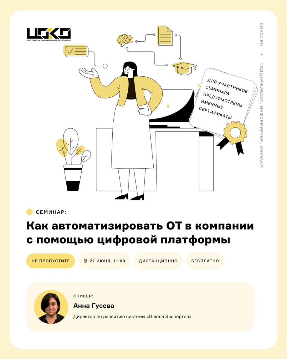 🔔 Друзья, напоминаем, что уже завтра, 27 июня, в 11:00 пройдет семинар «Как автоматизировать ОТ в компании с помощью цифровой платформы