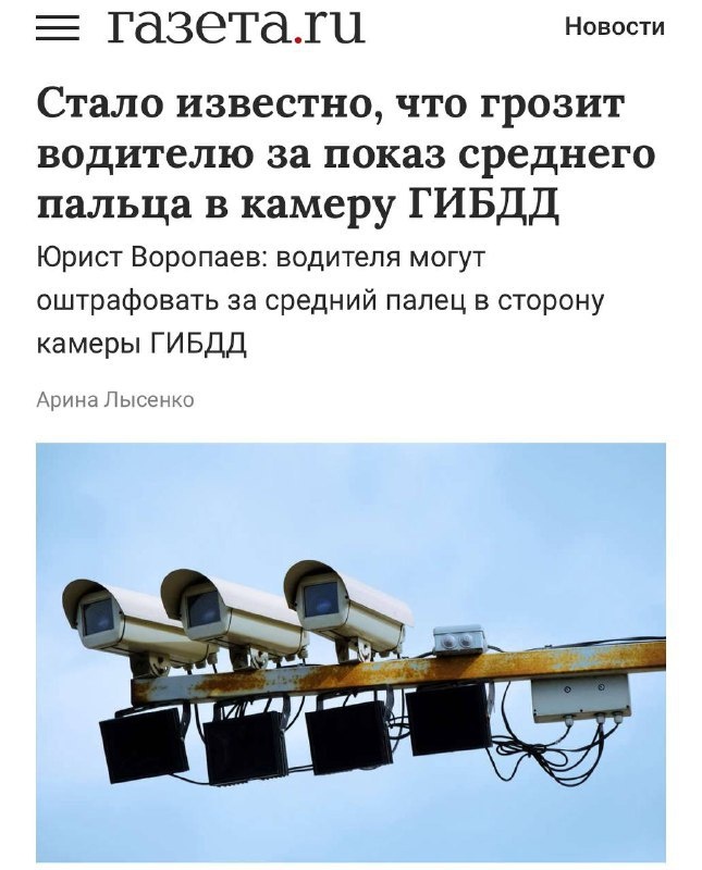 Теперь за средний палец в камеру ГИБДД можно огрести до 15 суток ареста. Юристы уже подтвердили: средний палец попадает под мелкое хулиганство — тут либо штраф до 1000₽, либо реально посидеть до двух недель. Так что не рискуем — улыбаемся и машем, когда нас снимают 👋😏 Подробнее: https://hard-tm.su/threads/98209/ 🕹HARD-TM — Подписаться