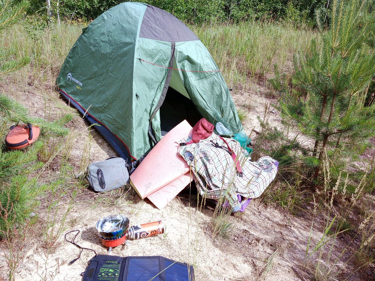 Встала рано, вышла из палатки, с удовольствием гуляя по песку босиком. Удивительно, но вместо почвы в Тюменской области иногда встречаются поля песка. Место, где я стояла, представляло собой песочную поляну в лесу. Утро было чудесное, но я потратила много времени на написание статьи в Дзен, потому на трассу встала поздно. С автостопом мне катастрофически не везло при огромном потоке машин. Я оказалась в месте, где была широкая автострада, машины на ней разгонялись, и никто ради меня тормозить не хотел. Наконец остановился молодой парень на легковой, провез километров тридцать. Ему надо было в поселок, зато я получила возможность зайти в "Магнит" и купила полуторалитровую бутылку воды. Дальше отстояла почти час. Наконец меня забрала следующая легковая. Тоже подвезли недалеко. Мужик свернул, а я осталась голосовать. Вот только стояла на автобане. Понятно, что тормозить ради меня тоже не хотели. Надо мной сжалилась, наконец, милая женщина, мама пятерых детей. С ней мы встречали в пр