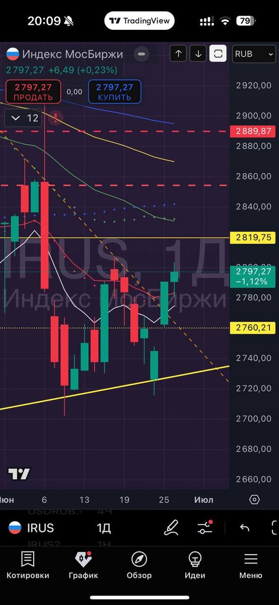 В ответ на пост 📉 Весь потенциал микротренда — реализован? По моим наблюдениям, рынок уже выжал максимум из локального роста. То, что сейчас видим наверху — скорее натянутая попытка “держаться”, чем истинное желание покупать. 🔍 Но всё расставит по местам закрытие недели. Именно оно покажет, были ли эти попытки пробиться вверх серьёзными — или всё это просто ловушка перед сливом. 📊 Теперь о важном. Дивиденды. В июле у нас крупные выплаты — и они уже заложены в цену. По моим расчётам, это около 85 пунктов индекса. То есть если убрать «дивидендный жир» — реальная цена индекса сейчас ближе к 2710, а не к 2790. 📌 Это важно. Почему? Потому что у меня большие сомнения, что мы сможем уверенно уйти выше 2800. Там, по ощущениям, заперта ликвидность тех, кто брал позиции под ставку, и любой рост превращается в выход по безубытку. 🧮 А теперь — про ставку. В рынок уже заложили ожидания снижения ключевой ставки до 18% в июле. Причём с запасом. Это уже учтено в текущих уровнях. А что если