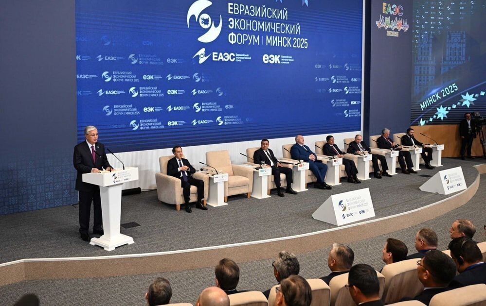 Президент Казахстана Касым-Жомарт Токаев выступил на пленарной сессии Евразийского экономического форума «Стратегия евразийской экономической интеграции: итоги и перспективы», которая состоялась в Минске. Об этом сообщает пресс-служба Акорды. Президент подчеркнул, что Евразийский экономический форум показал себя как значимая платформа для содержательного диалога по ключевым вопросам деятельности интеграционного объединения. Он отметил, что в прошлом году объем взаимной торговли достиг очередного рекордного значения – 98 млрд долларов, почти вдвое превысив показатель 2015 года. «Дальнейшее развитие ЕАЭС должно строиться, на наш взгляд, на принципах равноправия, взаимной выгоды и прагматизма, служить интересам экономик наших государств. Интеграция сама по себе не приносит искомых результатов, поскольку это итог совместной работы по поиску взаимоприемлемых компромиссов», – отметил Касым-Жомарт Токаев. Он также ответил на вопрос модератора о перспективах цифровых технологий в торговле межд