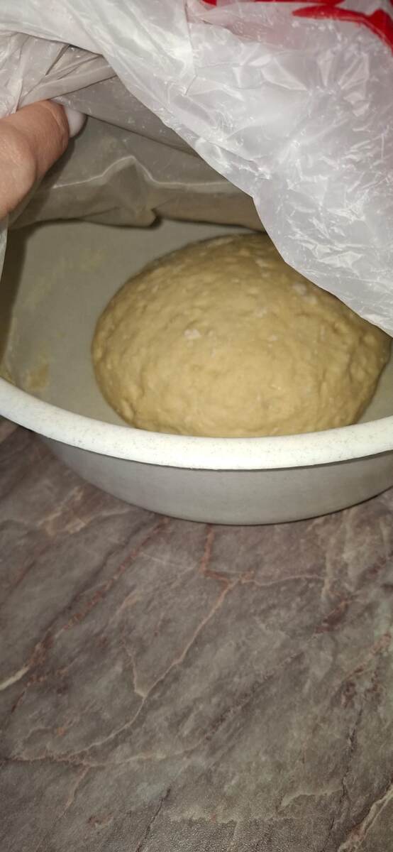 Думаю, расписывать как замешивать тесто не стоит, и так все знают. В основном я всегда тесто делаю в хлебопечки, но когда нужно чуть больше теста - делаю вручную. Ряженку беру комнатной температуры. Дрожжи сыплю вместе с мукой (сверху). Соль и сахар ложу в ряженку. В конце добавляю масло. Делаю всё в миске, сначала перемешиваю всё лопаткой или ложкой, а когда тесто начинаем сбиваться в "ком" - вымешиваю руками. Вот такое тесто получается. Накрываю его пакетом и полотенцем и оставляю в тёплом месте подыматься. Пока тесто подходит делаем начинку. Варим яйца и чистим. Режем зелень. Яйца трём на тёрке. Перемешиваем всё и солим по вкусу. Когда тесто поднялось (увеличилось в объёме в два раза), обминаем его и переходим к лепке пирожков. Я тесто делю на несколько частей и делаю пирожки порционально. Пока из одной части теста леплю пирожки, другие части ждут своей очереди. Слепив одну порцию, отправляю пирожки на сковородку. Пламя делаю небольшим, что бы не прошляпить их))) так как в это