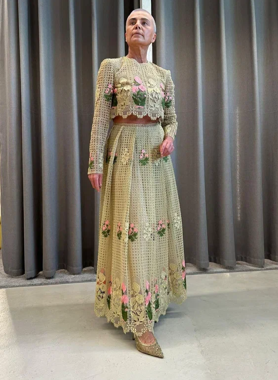 Временами кажется, что она разрабатывает объемное пособие по антистилю Образы неудержимо источают амбре сельского клуба для тех, кому за ... Сам собой всплывает тот самый термин "молодящаяся", который чаще всего употребляется в уничижительном смысле Особенно , когда возраст "чай не шашнадцать" считывается из любой точки Как человек с глубокой профдеформацией, внимательно вглядываюсь в эти ее странные наряды, пытаясь понять, да что же тут не так, на чем основан диссонанс, временами переходящий в чувство стыда, что хочется закрыть глаза рукой Не смотря на всякие разные супер-пупер бренды, некоторые образы выглядят откровенно негармонично Как будто снятые с кого-то, на ком они смотрелись красиво Главным образом, подобные образы смущают тем, что вступают в противоречие с ее вызывающим внешним видом И дело даже не в отсутствии волос, а во взгляде Как говорили у моем детстве, взгляд бОрзый 🙈😂 Такому взгляду совершенно чужды романтические образы "девочка ля-ля", которые во всех пабликах ре