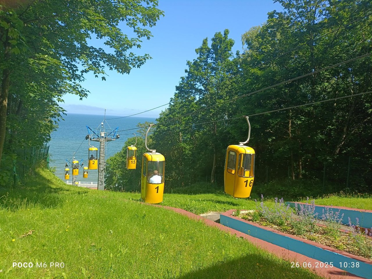 Современный облик канатная дорога в курортном городе на берегу Балтийского моря приобрела не сразу. В довоенном Раушене (ныне Светлогорск), ещё в 1908 году, был построен первый фуникулёр — уникальный транспорт того времени, состоявший из двенадцати сидений и оснащённый электрическим мотором. Его рельсовые пути прослужили до 60-х годов прошлого века, после чего фуникулёр уступил место канатной дороге, которая функционирует и по сей день. В начале 1970-х годов в Светлогорске началось строительство современной канатной дороги. Уже в 1983 году она соединила две части города: нижняя станция расположилась на набережной, а верхняя — у железнодорожной станции “Светлогорск-2”. В 2010 году “канатка” была закрыта на капитальный ремонт. После обновления, в 2014 году, она вновь открыла двери для пассажиров — теперь здесь курсируют 20 комфортабельных кабинок. Сегодня светлогорская канатная дорога — не только популярный городской транспорт, но и любимый аттракцион для туристов и местных жителей. Она