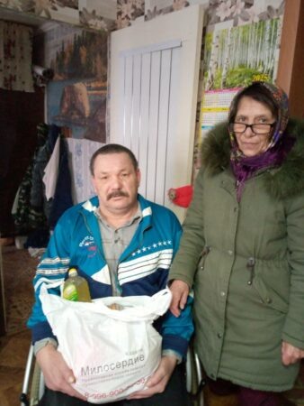 «Нашей самой возрастной подопечной девяносто шесть лет! Татьяна Ивановна живёт с дочерью-инвалидом, но не брошена. Есть двое сыновей, они за матерью и сестрой ухаживают. Мы им помогаем продуктовыми наборами. Ещё есть одинокая бабушка, Прасковья Ивановна, ей за восемьдесят лет. Мы чувствуем, что ей тяжеловато, тоже помогаем ей продуктовыми наборами. Приходим к ней, беседуем, поздравляем с праздниками», — продолжает рассказ Валентина Александровна.