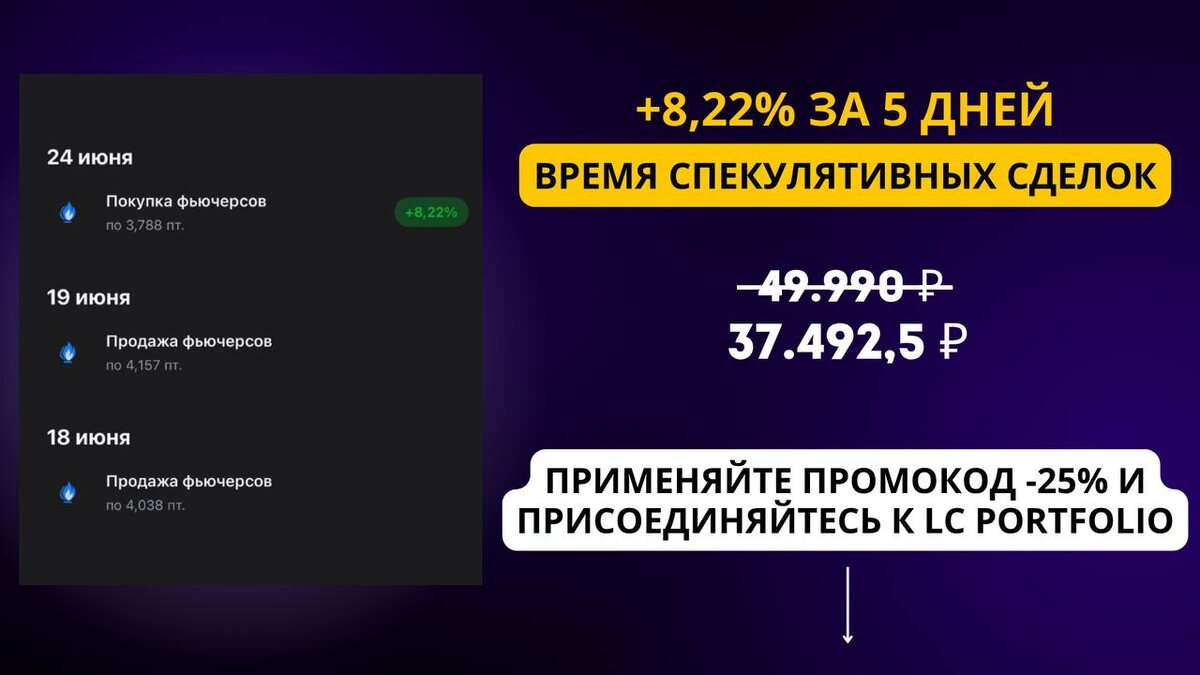 Каждый день что-то новое: войны, обвалы, санкции… Как на это реагировать? Когда нет стратегии, начинается хаос: ❌ кто-то в панике продаёт или скупает все без разбора ❌ кто-то просто замирает, не понимая, что делать Всё это — путь в никуда. Но есть другой путь — чёткая система и стратегия. Именно по нему я сам иду, и именно его показываю в своём закрытом канале. 🎯 Цель закрытого канала — капитал 100 млн рублей. И мы движемся к ней шаг за шагом, даже в нестабильные времена. Сейчас рынок — в фазе, когда на спекуляциях уже можно зарабатывать. И это лучшее время, чтобы подключиться. В канале: 📌 Стратегия и пошаговый план действий 📌 Реальные сделки, которые я совершаю сам (это не сигналы!) 📌 Удобная таблица и канал с анонсами сделок 📌 Спекулятивные сделки и прямые эфиры с торговлей в реальном времени 📌 Фьючерсные сделки 📌 Информацию по IPO (в 2024 году — прибыль по всем сделкам) 📌 2 моих портфеля с ОФЗ и доступ к ним + 12 ценных уроков в подарок дают сильную базу — от понимани