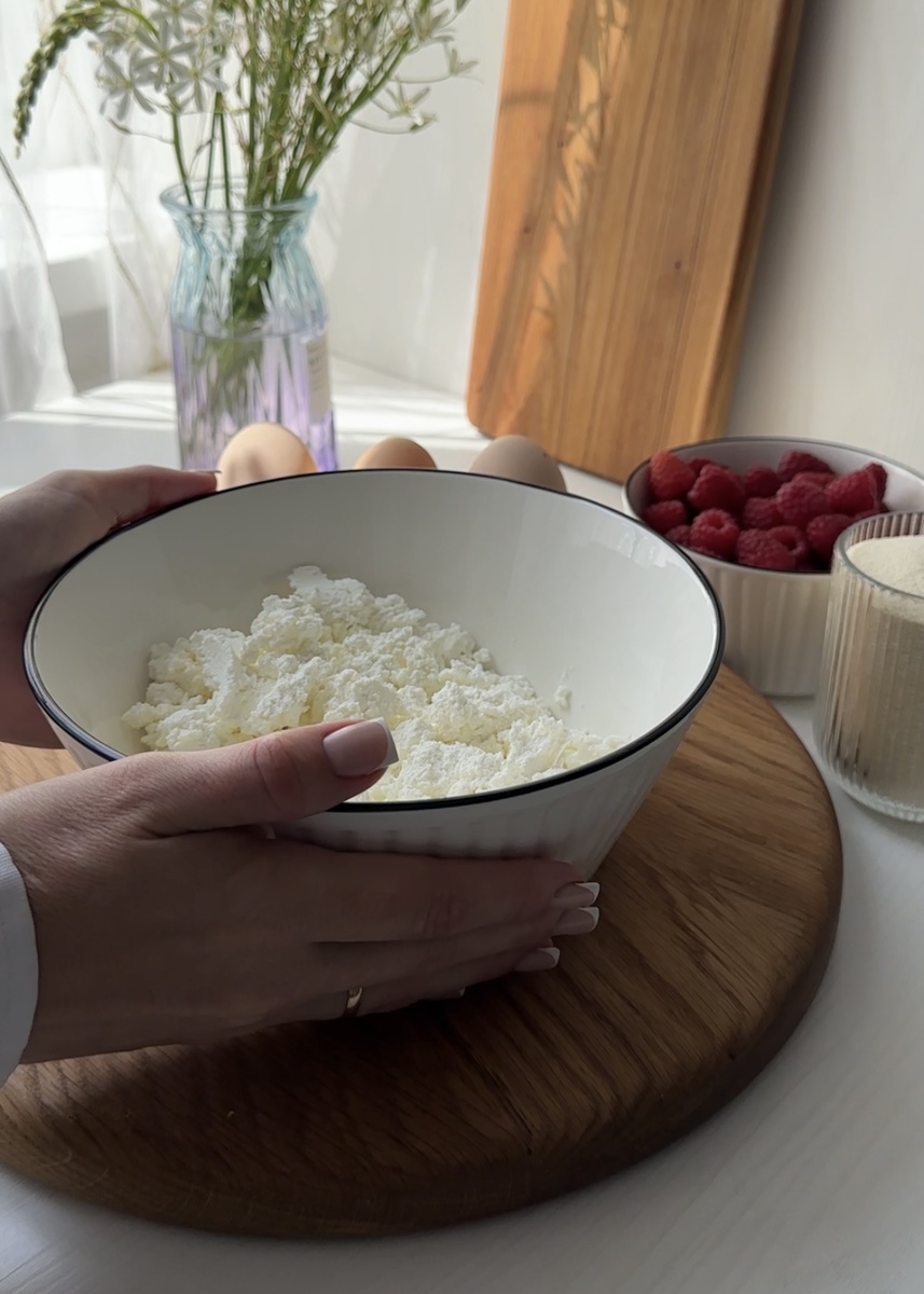 Иногда с утра хочется не модного боула, не круассана, не смузи, а чего-то простого, тёплого и домашнего. У меня такие дни случаются часто. И именно тогда я достаю из холодильника творог и готовлю сырники. Но не просто жарю на сковороде, как раньше, а запекаю в аэрогриле. Почему так? Потому что это быстрее, чище и, что немаловажно, полезнее. Масла не нужно вообще, и сырники не подгорают. Делюсь рецептом, который для меня стал почти рутиной. Утренней и приятной. Начинается всё с творога. Только брикеты. Я беру «Простоквашино» или «Коровку из Кореновки», 5% жирности. Эти марки проверены временем. Главное, чтобы творог был не слишком влажный. Если попался мягкий и мокрый, отвешиваю. Беру марлю или просто сито, кладу творог и оставляю на полчаса. Иногда и на ночь, если заранее знаю, что утром будут сырники. Чем суше творог, тем проще с ним работать, и тем лучше он держит форму в готовом блюде. Разминаю творог всегда вилкой. Без техники. Когда перемешиваешь вручную, чувствуешь консистенцию,