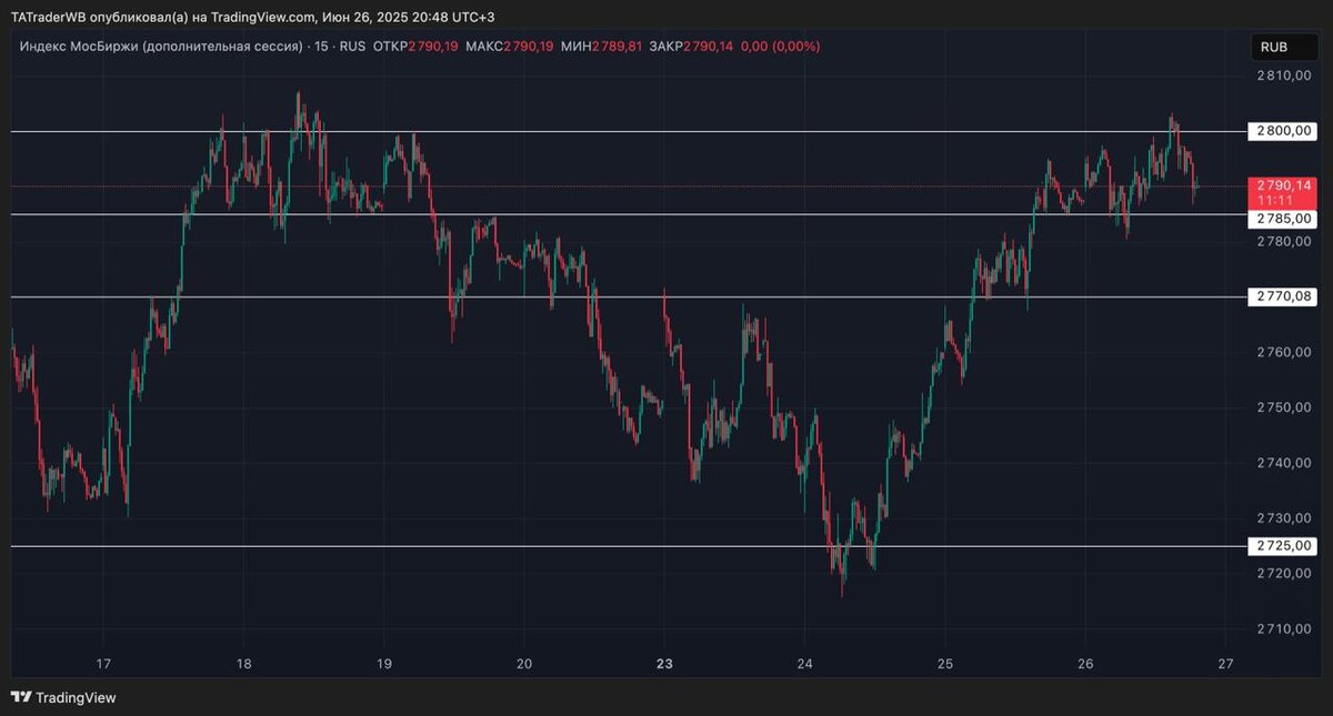 📝 ВНОВЬ все не просто так… 👉 Сегодня индекс продолжил движение вверх. Движение это было медленным, даже очень, однако основная торговая сессия закрылась зеленой свечкой, в проторгованный уровень 2800. Если смотреть на всю картинку в целом, то получается, что после проторговки 2800 цена сделала небольшой откат и вновь жмется к сопротивлению. Это бычий признак. Однако, вечернюю торговую сессию начали сливать, причем так, что цена буквально перерисовала закрытие. Теперь оно стало нейтральным, а с какой то стороны даже шортовым. ✅ Вот и получается, что вновь не совсем простая картинка формируется. Сил, для того, чтобы двигаться выше 2800 особо нет + снизу остались НЕ закрытые гэпы. Поэтому локально думаю, скорее всего будет откат в сторону 2760 - 2770, а дальше уже будем смотреть по факту. Однако повторюсь. Закрытие далеко не самое простое. Касаемо приоритета работы на завтра все пропишу. Всем удачи. 🤝