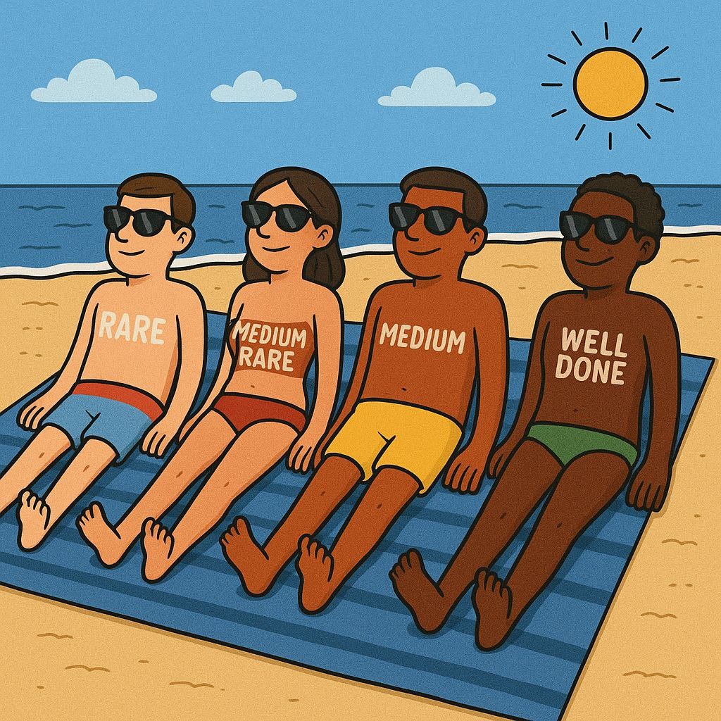 Напишите микро-рассказ из 7 слов или меньше (или больше), на тему "Прожарка под солнцем".