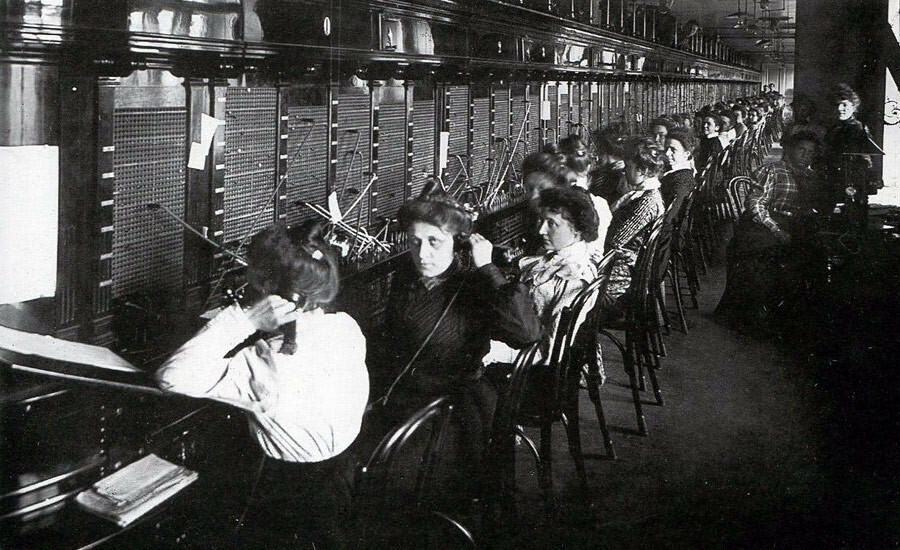 В начале XX века телефонистки были незаменимы. До появления автоматических телефонных станций звонки между абонентами соединялись вручную. Женщины (а профессия была почти исключительно женской) работали на коммутаторах, вставляя и вынимая штекеры, чтобы соединить абонентов. В 1920-х годах в США насчитывалось около 178 тысяч телефонисток, и их труд считался престижным, несмотря на высокую нагрузку и необходимость работать в ночные смены.