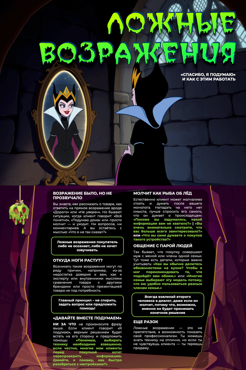 "Спасибо, я подумаю" - ой как менеджеры не любят эту фразу, потому что они теряют сразу же 2 ценные вещи - это сделка и личное время. Ложное возражение - это по сути вежливый отказ, чтобы прямо не говорить менеджеру "Нет". За ложным возражением всегда скрывается истина, то, что же все-таки оттолкнуло покупателя от покупки. Даже молчание может быть ложным возражением если человек достаточно груб. Алгоритм работы невероятно прост. Чтобы вывести человека на истинную причину отказа от "сделки" нужно задать ему вопрос или предложить помощь, например: "Расскажите, чего не хватает, чтобы вы могли совершить покупку прямо сейчас?" или "Какие у вас остались вопросы, чтобы я смог ответить на них , перед покупкой?" Я не буду питать вас влажными мечтами, что прочитав мои статьи и узнав все алгоритмы работы с возражениями - каждая консультация будет продажей. Нет, так не будет. Но работая абсолютно с каждым возражением и соблюдая алгоритм - вы точно повысите свои шансы на закрытие сделки! Хороших пр