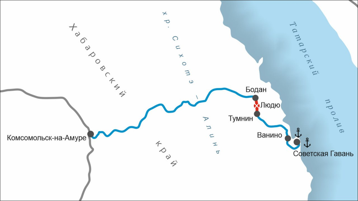 Так этим летом было открыто движение по второму пути на перегоне Бодан - Тумнин. Данный перегон находится на линии Комсомольск-на-Амуре - Ванино в Хабаровском крае. При этом на данном перегоне был закрыт разъезд Людю, а два смежных участка были объединены в один большей длиной 17 км. Благодаря введению двухпутного перегона повысится провозная способность железной дороги, что позволит везти больше грузов из и, наоборот, в порты на побережье Татарского пролива. Железная дорога на данном участке огибает подножие восточного склона хребта Сихотэ-Алинь и идет вдоль берега реки Тумнин. Это создавало определенные сложности во время прокладки второго пути. При этом для защиты путей от паводков были обустроены бермы шириной до 3 м, водоотводные канавы и кюветы. На данном участке было построено три моста, в том числе один длиной свыше 60 м. Всего при постройке пути было переработано 104 тысяч кубических метров грунта.