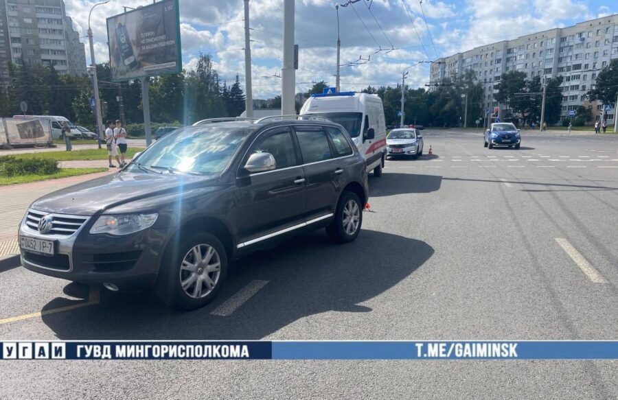 Горожанка на велосипеде попала под машину на пр. Газеты «Правда» 26 июня, сообщает корреспондент агентства «Минск-Новости» со ссылкой на столичную ГАИ. Водитель внедорожника Volkswagen поворачивала с проспекта направо на ул. Голубева и наехала на велосипедистку, которая на зеленый свет выехала на пешеходный переход. Сбитую гражданку отвезли в больницу для обследования. Это ДТП стало не единственным в городе в четверг. В послеобеденное время на МКАД в аварию попали три попутных грузовика. Причем менее крупный марки Mercedes-Benz оказался зажат между двух «МАЗов» и получил значительные повреждения кабины. Его водитель, которого осмотрели медики, отказался от госпитализации. Фото ГАИ