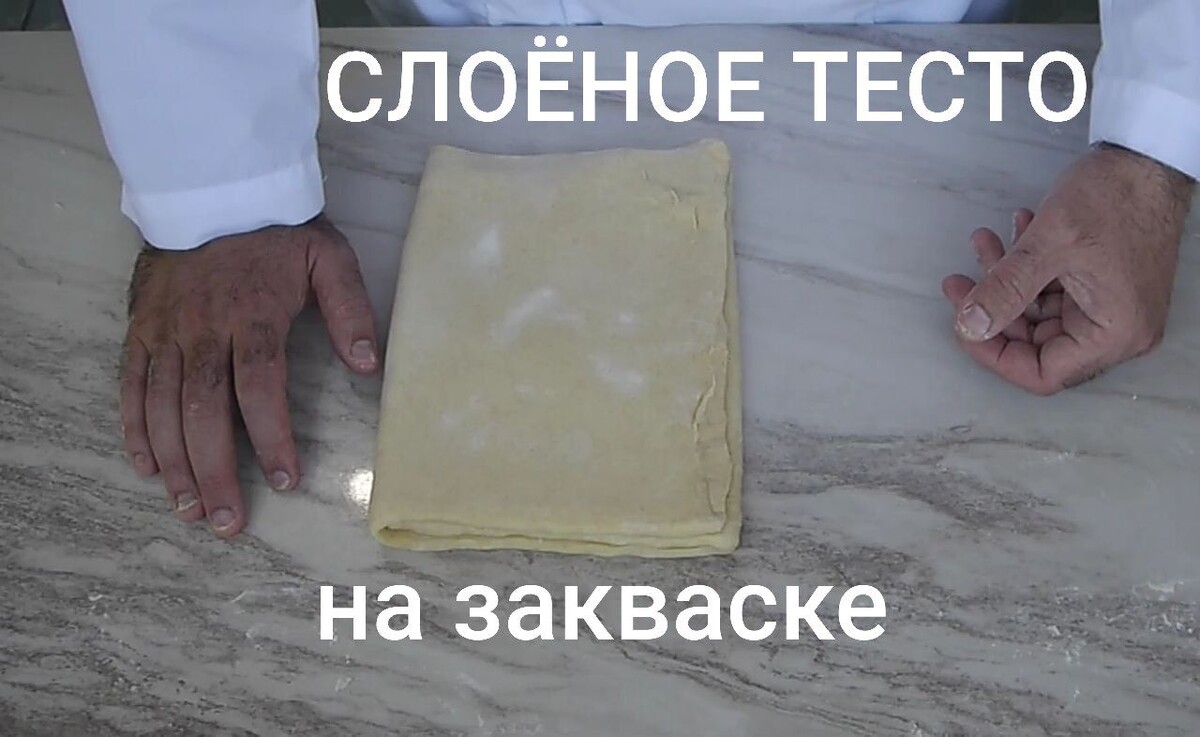 Рецепт Закваска 20 гр пшеничной закваски жидкой 220 гр воды 220 гр пшеничной муки в/с Тесто Вся закваска 620 гр пшеничной муки в/с 75 гр пшеничной цельнозерновой муки 230 гр молока 14 гр соли 2 яичных желтка 90 гр сахара 60 гр сливочного масла Ламинирование теста 400 гр сливочного масла К материнской пшеничной закваски добавляем нужное количество воды и муки и перемешиваем до однородной массы. И оставляем при комнатной температуре на 10-12 часов до полного созревания. После созревания закваски начинаем готовить тесто. К созревшей закваске добавляем молоко комнатной температуры, желтки и оба вида муки. Хорошо перемешиваем и оставляем на аутолиз на 30 минут. Пока тесто находится на аутолизе, можно раскатать сливочное масло. У меня тесто будет поделено на две заготовки, поэтому и сливочное масло я раскатывал по 200 гр. Возьмите 200 гр сливочного масла из холодильника, оберните в пищевую пленку и раскатайте в квадрат. После раскатки положите в холодильник на 8-12 часов. П