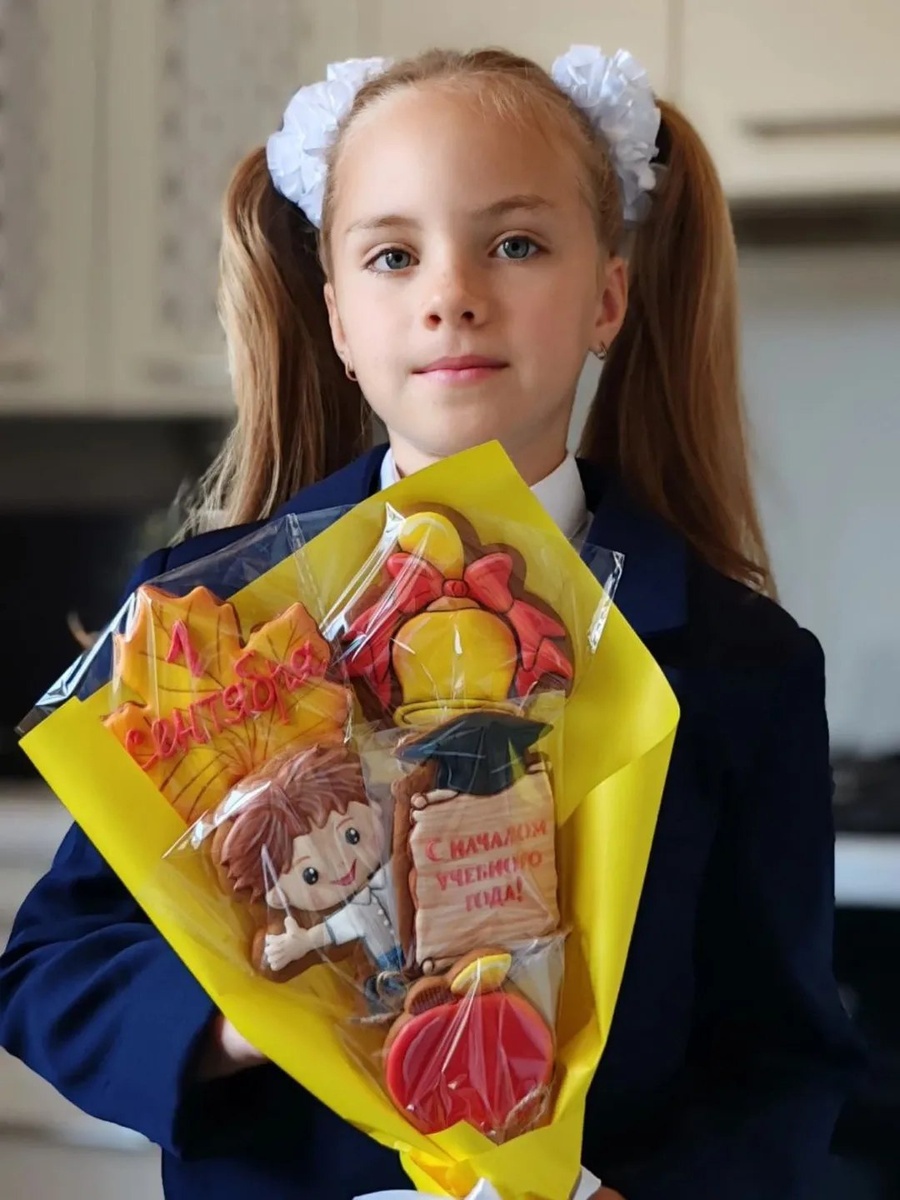 Наталия прошла обучение в БПШ на Свадебном курсе и в и Летней школе, а также была активной участницей нашего клуба пряничных мастеров. Сейчас создает прекрасные пряничные композиции, которые радуют и детей, и взрослых! Дочка Наталии окончила 4 класс, и на каждый школьный праздник (первый звонок, выпускной, 8 Марта, День учителя) она идет с пряничным букетом или набором 🎀🍪 Даже в школьных конкурсах они с дочкой участвуют с пряничными поделками. А ещё Наталия делает пряничные подарки на все праздники: Новый год, Пасху, Дни рождения и даже несмотря после отпуска, который обычно в августе, есть постоянные заказы на День знаний😊 Наталия уверена: пряники вместо цветов - это тренд, который уже полюбили. Однажды у нее была заказчица, которая раньше занималась букетами из живых цветов, но учитель попросил не дарить такие букеты, и она тоже выбрала пряничный вариант. Это не только красиво, но и очень вкусно. Конечно, такой подарок точно запомнится. Какие принципы Наталии в работе