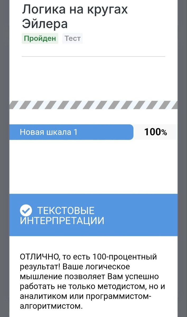 Ну, слава Богу, из 15 вопросов 15 верных ответов. Недаром мне до сих пор снятся сны, что я решаю задачки по математике. Значит и психологом работать могу, логика нам очень нужна) Это я развлекаюсь на сайте Клуба испытателей тестовых технологий - проекте Александра Шмелева, нашего преподавателя по статистике в университете. Там до конца июня открыт тест на креативность, и есть много других тестов: на интеллект, черты личности, эрудицию. Они открыты для всех, так что, если интересно - велкам) #обо_мне@pro_osoznan
