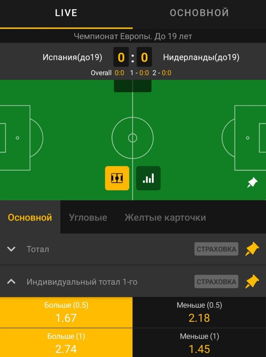 🔴⏱⏱ Чемпионат Европы до 19 лет 🇪🇺 🇪🇸 Испания - Нидерланды 🇳🇱 Инд.тотал хозяев 0.5 / 1 (Б)