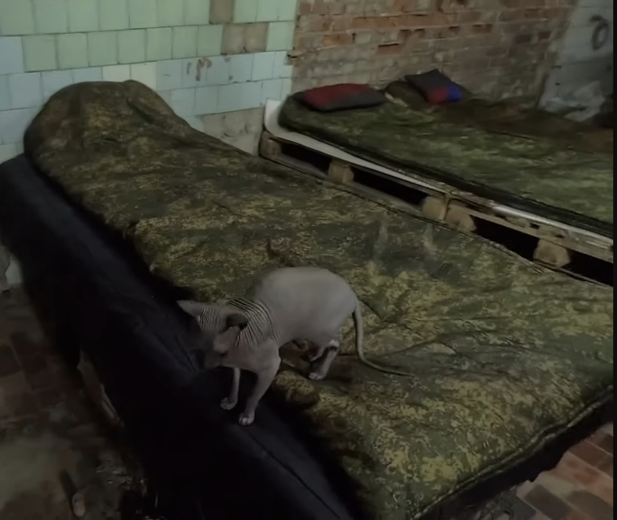 Недавно наткнулась на видео из полевого медпункта сюжет о работе врачей на передовой. Не госпиталь, а перевалочный пункт, где делают перевязки, оказывают первую помощь, а потом отправляют дальше. Всё в кадре было предельно буднично: простое помещение, уставшие руки, привычная спешка. И вдруг тишина. Из-под кушетки выходит кот. Чёрный сфинкс. Лысый, хрупкий, будто чужой в этом месте. Его зовут Тайсон. Он спокойно подошёл к человеку, дал себя погладить без страха, будто давно здесь живёт. Через пару секунд ушёл обратно под кушетку. Всё это заняло меньше минуты, но именно этот момент оказался самым живым за всё видео. Меня поразило, как существо, которое выглядит таким уязвимым, может существовать в этих условиях. Беззащитный снаружи но с каким-то внутренним спокойствием, как будто он держит вокруг себя невидимую зону тепла. Этот короткий фрагмент, случайный кадр из сюжета, запомнился сильнее всего. Тайсон стал не просто “местным котом”, а живым напоминанием: пока кто-то рядом даже м