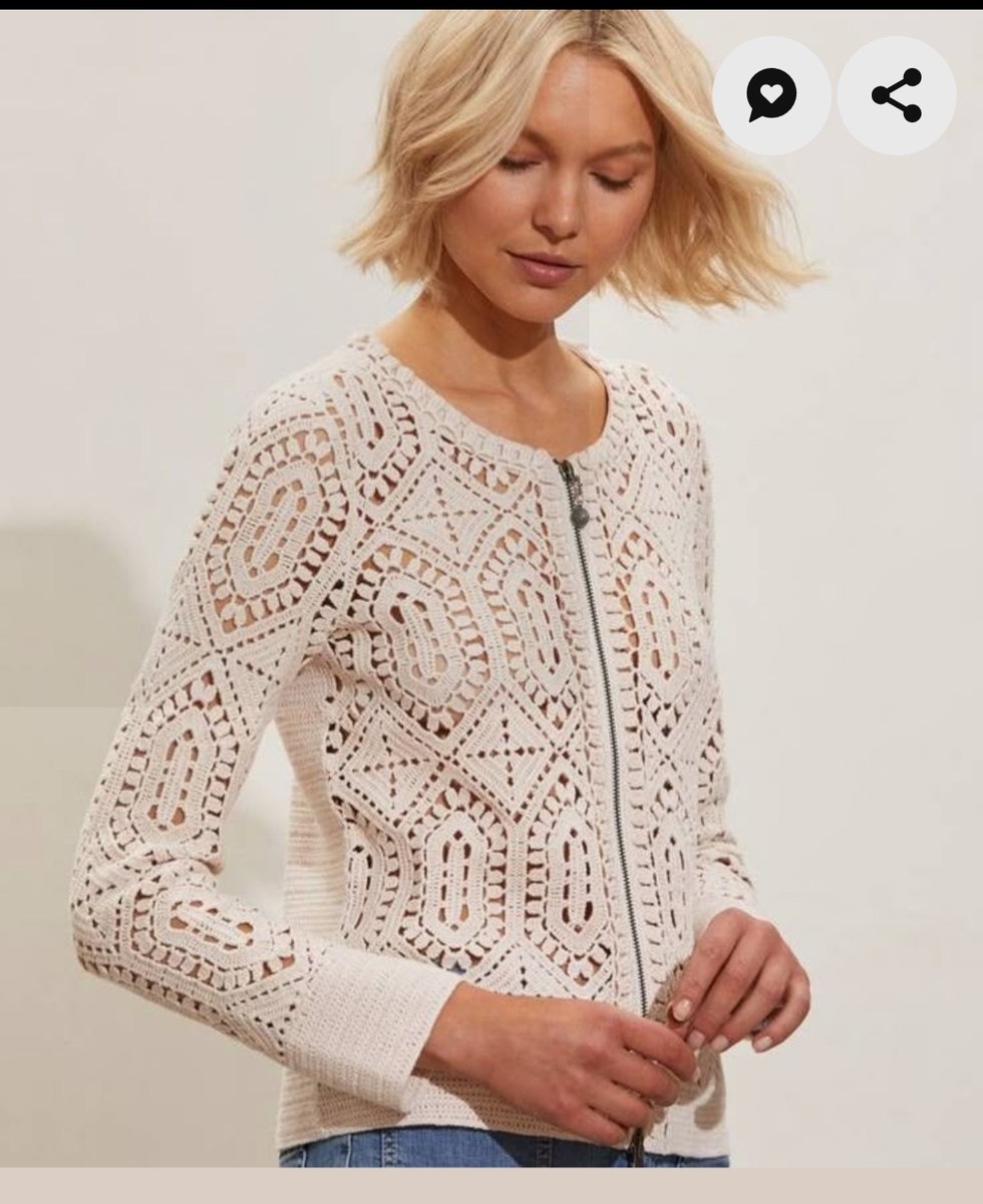 Захотелось мне тут бомбер крючком, ну или жакет на молнии. Кому как удобно сейчас называть. Именно крючком, ну потому что спицами я и на машинке могу. Ну как могу, пока учусь, но через некоторое время точно смогу. А крючком эксклюзив, точно 100% ручная работа, такое на машинке за вечер не сбацаешь. А тут ещё одно путешествие, аж прямо на самый юг Азии, через Китай, Лаос, Таиланд и т. д., аж на 1,5 месяца. Я ж с ума сойду столько сидеть в пути. Из запасов пряжи нашла себе бобинку хлопок с шелком. Нравится мне в нем четкость узора, хотя, наверное, тяжеловат будет. Но на то он и бомбер, ему можно. Чай не платье или топ. В идеале еще и подклад надо будет сделать. А вот ниже идеи и сам узор. Видимо, из книги скан, качество не ахти. Но детали в целом видно хорошо. Единственное, что в схеме в основном столбики без накида. А на модели в готовом варианте узор более плотный. Я уже связала образец, и со столбиками с накидом он выглядит солиднее. Так что, если кто надумает повторить, вот
