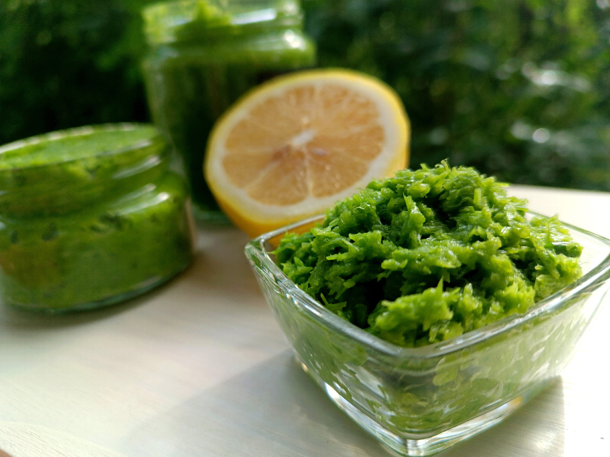 - Можно перекрутить несколько раз через мясорубку,но тогда масло,соль,лимонный сок добавляем в готовую кашицу в конце.