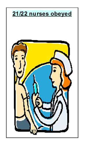 · Большинство медсестёр (21 из 22) готовы были выполнить приказ, даже зная, что дозировка опасна. У палаты пациента их остановил наблюдатель в отделении.