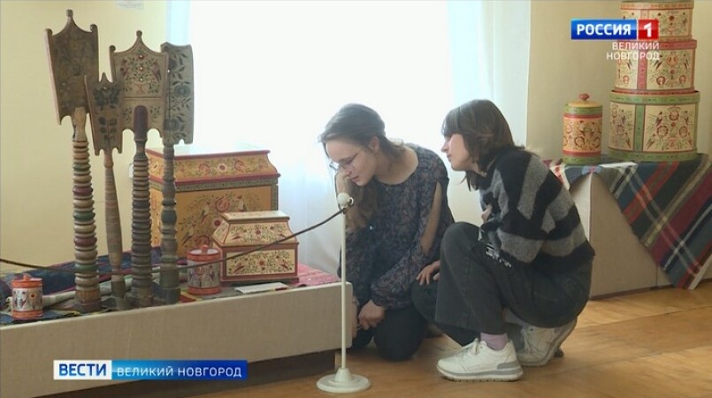 В Детском музейном центре Новгородского музея-заповедника открылась выставка «Прялочные росписи Новгородчины»
