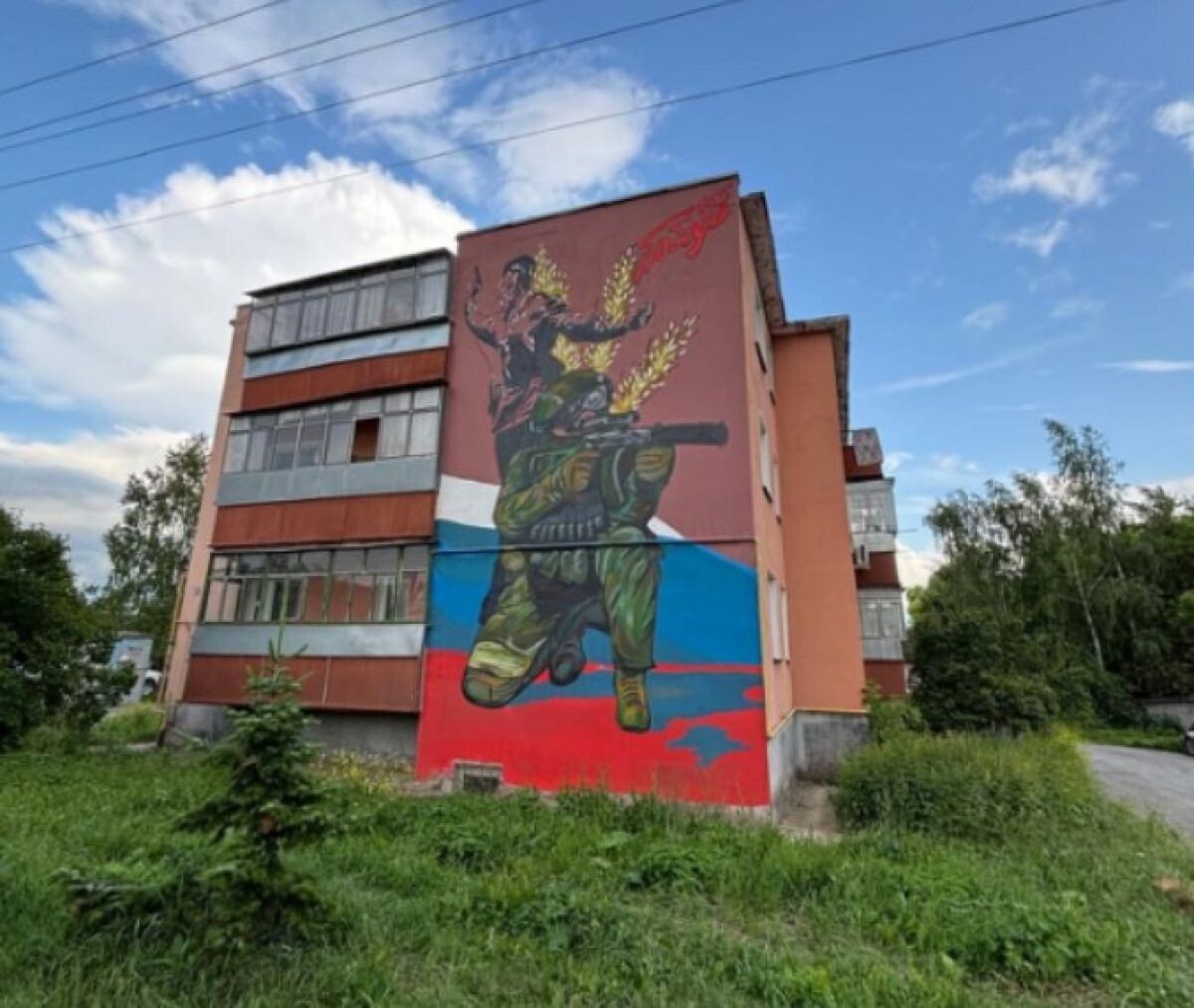 В центре села Красное Липецкой области на стене жилого дома № 6 на улице Октябрьской появился красочный мурал, посвященный бойцам двух эпох.