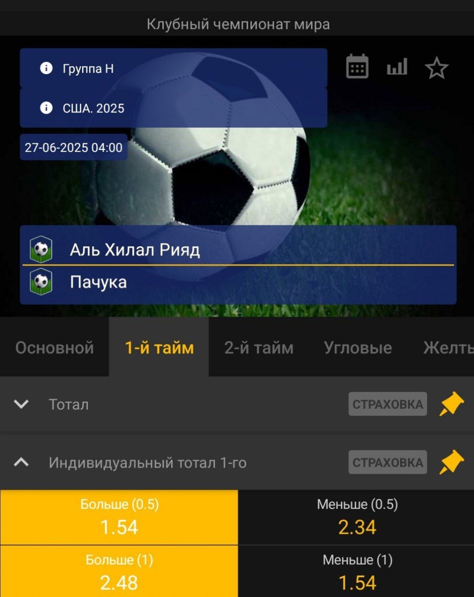 Инд.тотал хозяев в 1 - ом тайме 0.5 / 1 (Б)