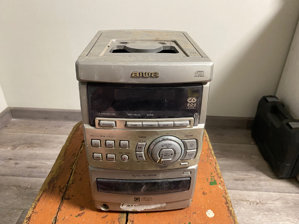 Назывался этот музыкальный центр «Aiwa». Сверху у него был дисковод для компакт-дисков, а снизу — кассетоприемник для кассет.