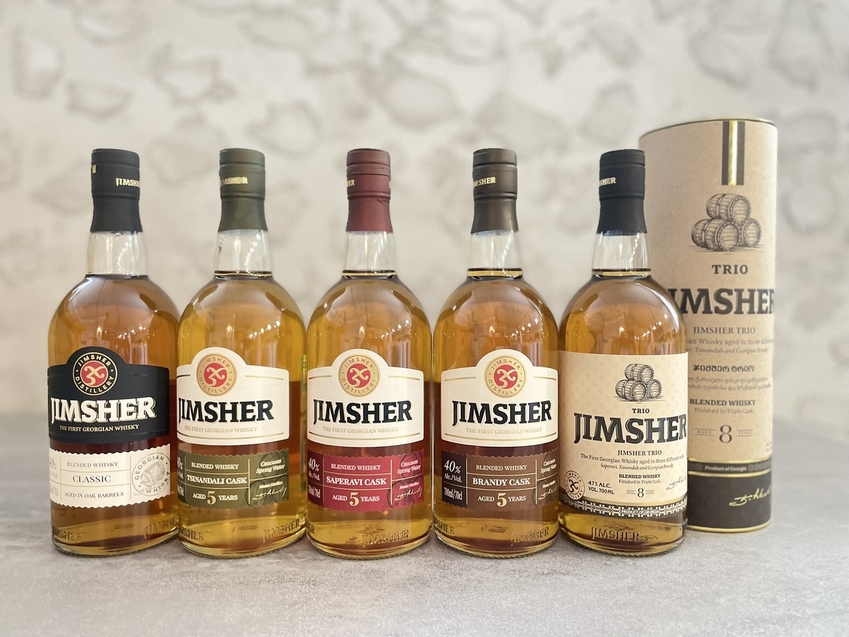 Примерно год назад я уже писал про грузинский виски Jimsher, тогда он только искал свои пути на российский рынок, сейчас он до него добрался, правда уже в другом оформлении и с другим описанием. Так как на канале уже писал всё максимально подробно, плюс в сети есть ролики про него, то на всех подробностях производства я останавливаться не буду, а сразу перейду к дегустации всей линейки, которая состоит из пяти релизов (в прошлый раз я писал лишь про три).