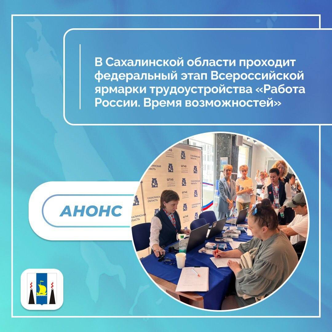 🗾 Сегодня в областной столице и других городах островного региона проходит федеральный этап Всероссийской ярмарки трудоустройства