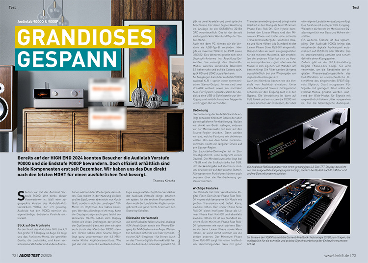Немецкий журнал Audio Test опубликовал обзор предусилителя Audiolab 9000Q и усилителя мощности 9000P под заголовком «GRANDIOSES GESPANN» — «Грандиозное сочетание». Автор статьи Томас Кирше подробно изучил оба компонента и высоко оценил их возможности как по отдельности, так и в связке.
