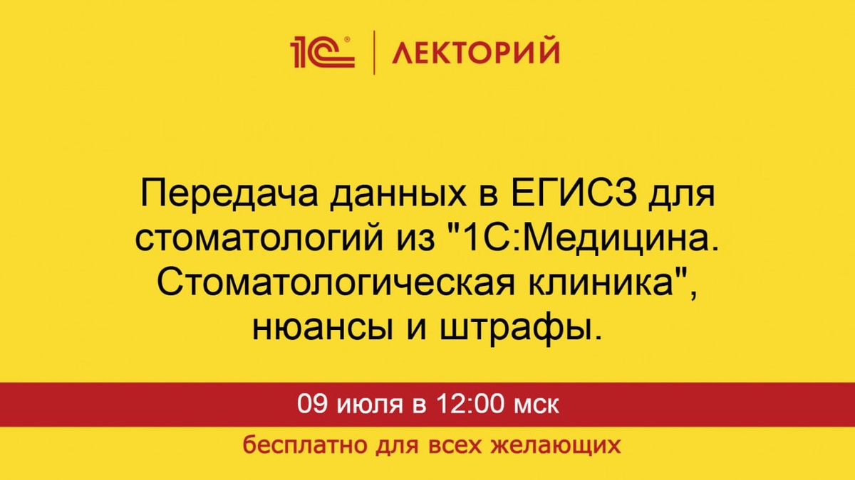 Передача данных в ЕГИСЗ для стоматологий из "1С:Медицина. Стоматологическая клиника": нюансы и штрафы. Согласно Постановлению Правительства № 852 c 1 сентября 2021 года клиники всех форм собственности обязаны передавать сведения об оказанной медицинской помощи в ЕГИСЗ. В ходе лекции Борис Морозов, руководитель направления 1С:Медицина. Стоматологическая клиника рассмотрит вопросы организации передачи данных в ЕГИСЗ, зачем это нужно и на что требуется обратить внимание: 🟠что такое ЕГИСЗ; 🟠кому требуется передавать данные; 🟠какие данные нужно передавать для выполнения закона; 🟠можно ли не передавать и штрафные санкции за это; 🟠как автоматизировать передачу данных через 1С:Медицина.Стоматологическая клиника и 1С:Медицина.Регион; 🟠ответит на вопросы слушателей. ☝️ Зарегистрироваться на лекцию и задать вопросы лектору 🚨Подписывайтесь на @lector_1c